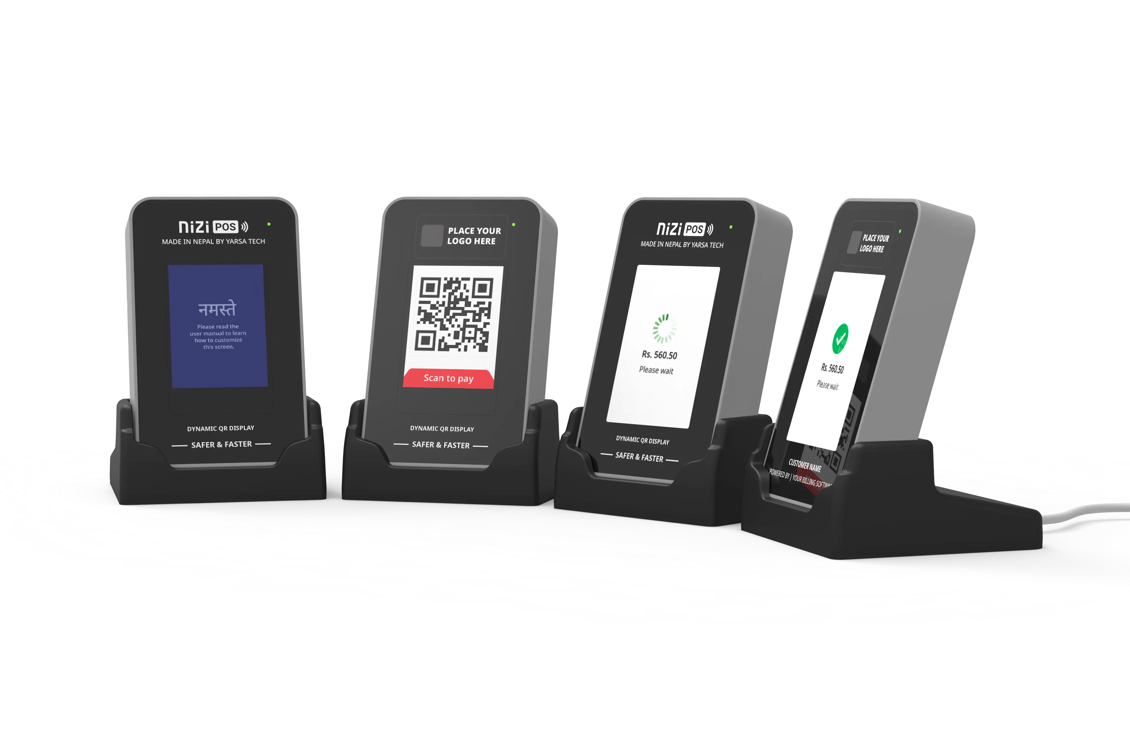 NiziPOS is a compact dynamic QR display device with instant payment feedback. It also acts as a second screen. No need to turn your monitor toward customers!